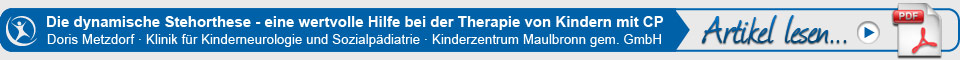 Mit einer korrekt angefertigten und frühzeitig, therapeutisch eingesetzten Stehorthese (ab einem Alter von ca. 20 Monaten) führt das Training funktioneller Aktivitäten im Stehen zu einer eindeutigen Verbesserung der aufrechten Körperhaltung und damit der Rumpf und Kopfkontrolle. Dadurch ist bei vielen Kindern die Ausgangslage für das Erreichen des freien Stehens bzw. Gehens (abhängig von der Diagnose) gegeben.
